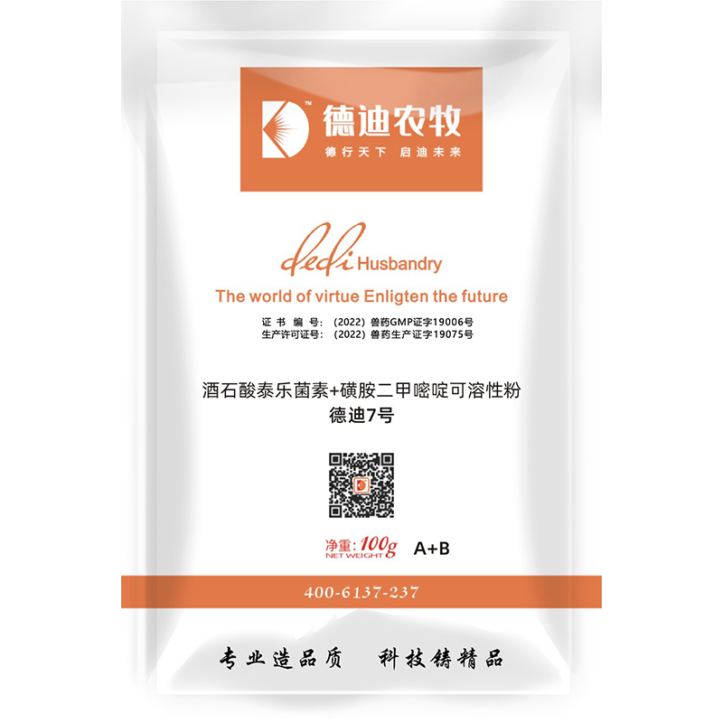 【規(guī)格】100g:泰樂(lè)菌素10g (1000萬(wàn)單位) +磺胺二甲嘧啶10g